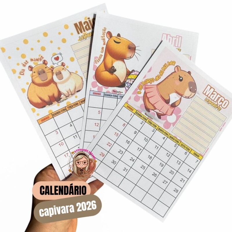 Ilustrações exclusivas de capivaras super fofas, uma para cada mês