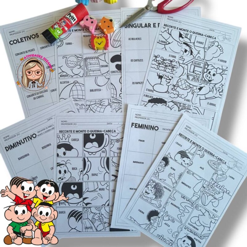 O Quebra-Cabeças de Língua Portuguesa – Turma da Mônica é um arquivo digital em PDF para imprimir, com 6 atividades lúdicas que estimulam a leitura, o raciocínio e a memorização de forma leve e envolvente.